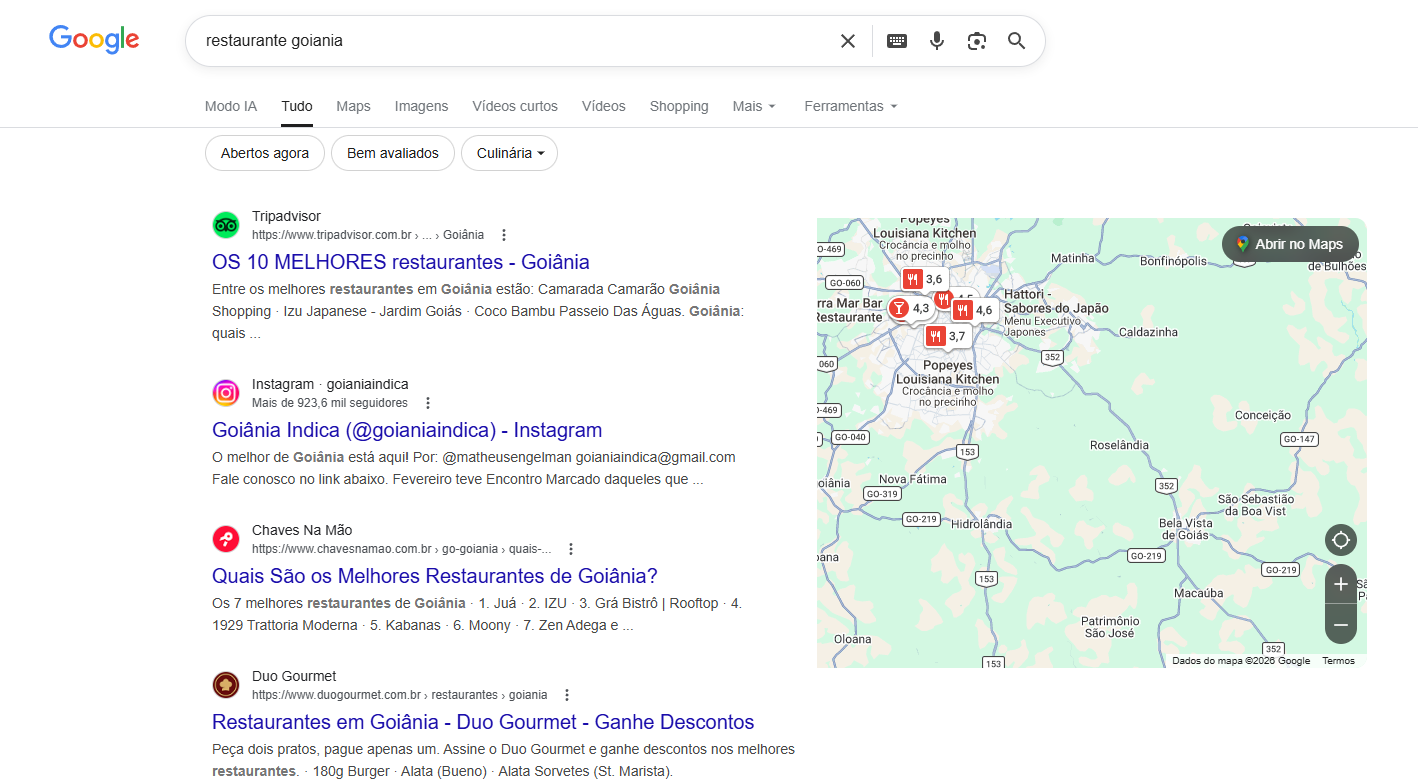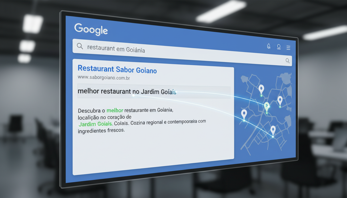 Por exemplo, se um restaurante em Goiânia adiciona termos como “Goiânia”, “Setor Bueno” ou “Jardim Goiás” na meta description da página inicial, o mecanismo de busca consegue associar o site a pesquisas como: